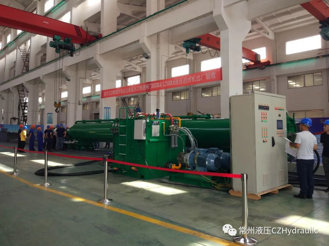白鶴灘水電站位于中國四川省、云南省交界處金沙江下游河段。本次出廠驗收的白鶴灘水電站左岸進水口快速閘門8000kN/12500kN液壓啟閉機啟門力8000kN,工作全行程12.65m,啟門速度(活塞桿)0.5m/min,快速閉門時間4min(不含充水閥關(guān)閉時間),持住力達12500kN。
